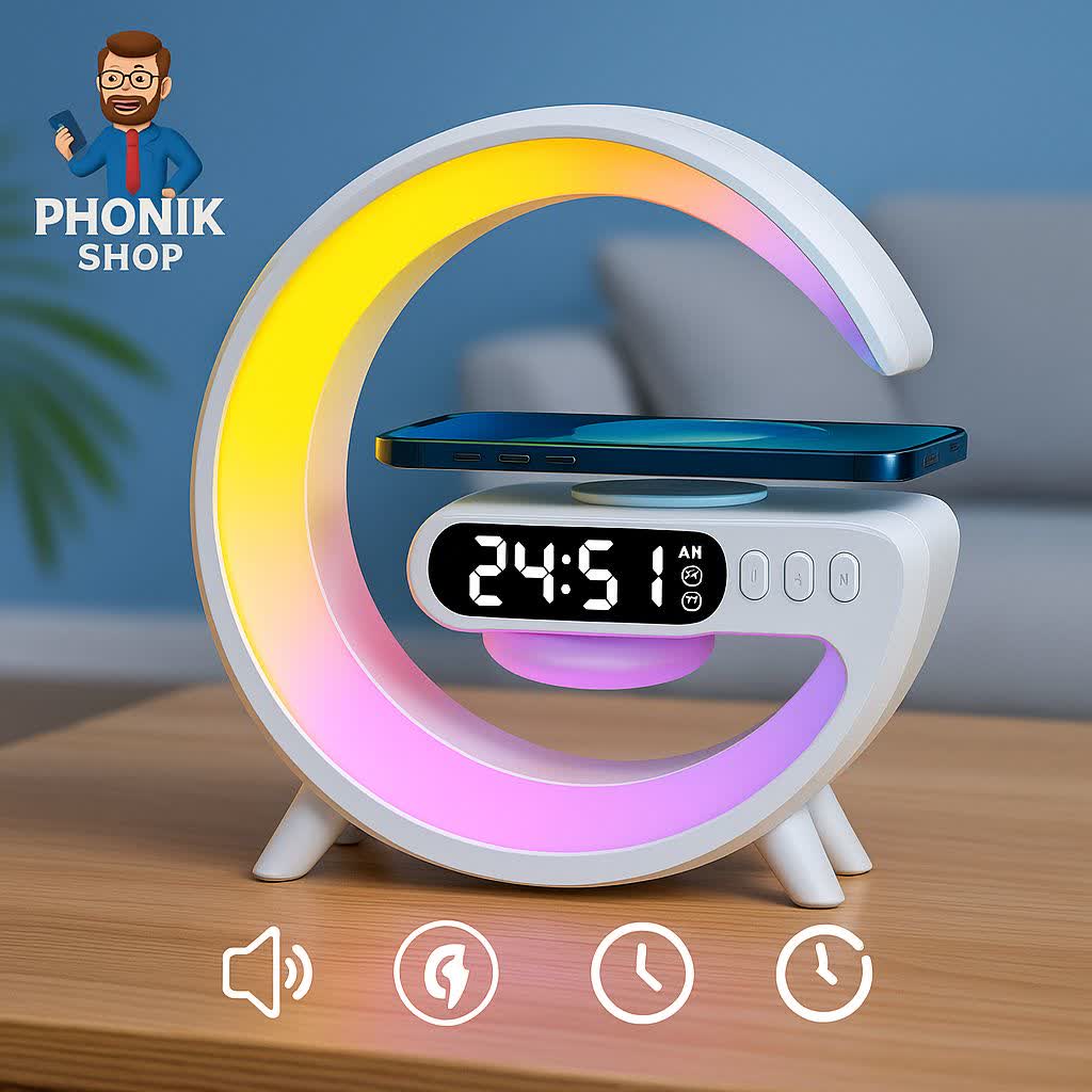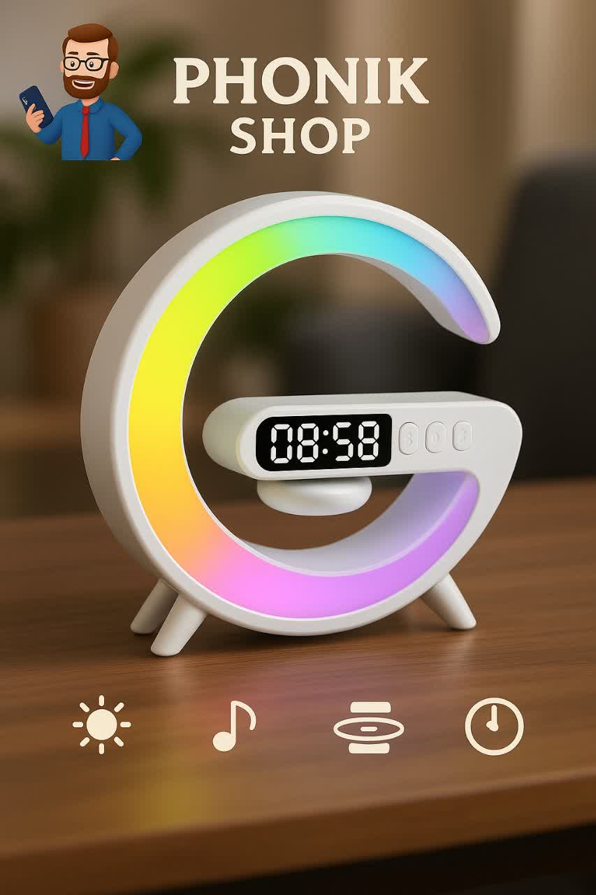 شارژ وایرلس، ساعت زنگدار، نور LED چندحالته، اسپیکر بلوتوثی